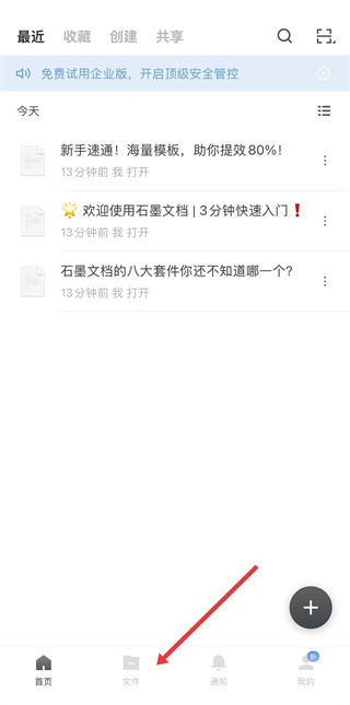 1、在【石墨文档】首页,点击底部【我的】选项,可进入个人中心页面。