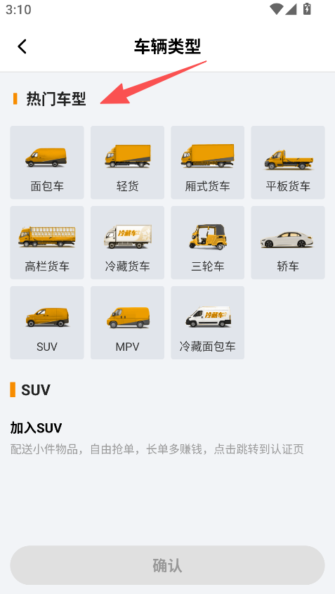 2、车型选择板块丰富实用,多种热门车型分类展示,每种车型对应不同拉货业务场景,司机可精准选择,增加接单机会。