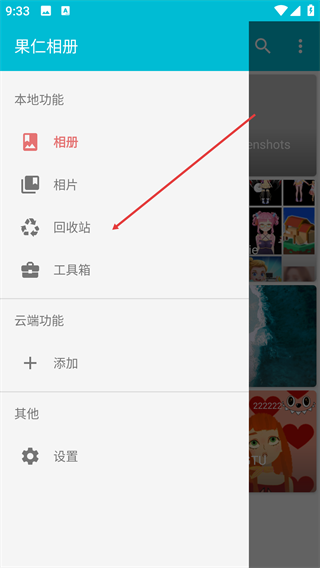 2、在打开的功能侧边栏中,找到并点击【回收站】选项,进入回收站页面。