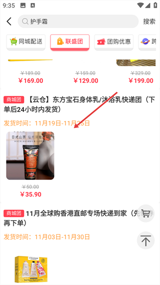 2、在搜索结果页,找到想要的商品。
