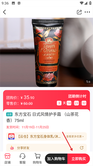 3、在商品详情页,点击底部“立即购买”按钮。