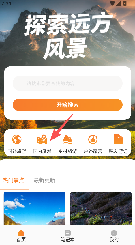 1、旅游分类丰富,涵盖国内、国外、乡村、户外露营等,适配不同旅游偏好,让用户快速定位旅游方向。
