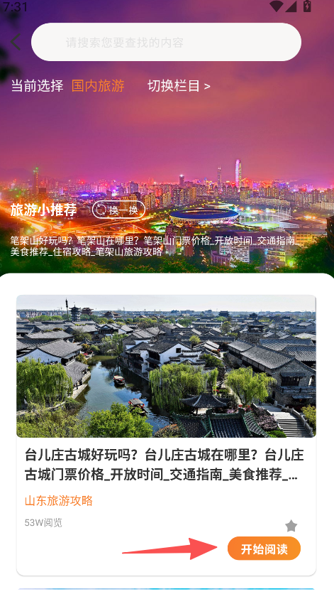 2、支持景点攻略阅读功能,提供门票、交通、美食等详细信息,助力用户深入了解景点。