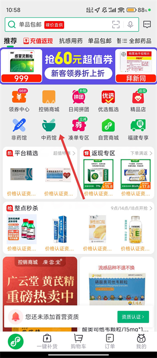 1、我们在药帮忙主界面,找到【中药馆】按钮并点击,可进入品质中药馆专区,查看各类中药商品。