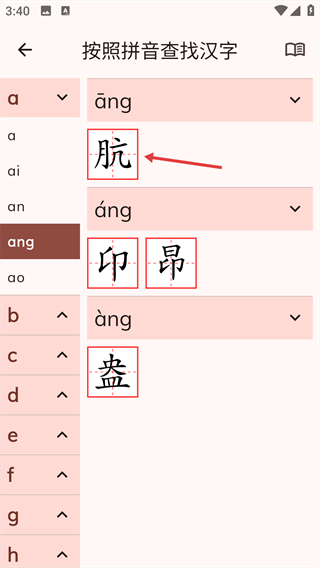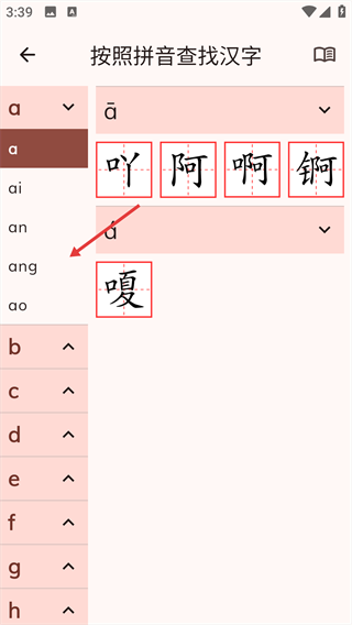 3、找到对应的汉字,点击该汉字进入详情页面。
