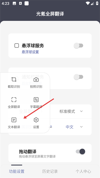 3、创新拖动式翻译模式,通过悬浮球自由选取屏幕上任意文字区域,实现指哪译哪的精准定位翻译体验。
