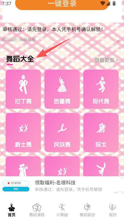 1、打开软件,进入舞蹈大全,选择拉丁舞等舞种。