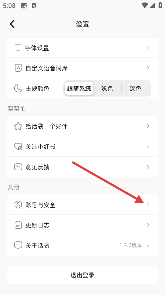 3、在设置页面,点击【账号与安全】选项,可进入账号安全管理页面。