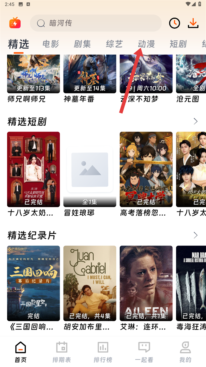 1、打开闪映影视,点击顶部【动漫】标签,进入动漫专区,各类动漫作品汇聚于此哦。