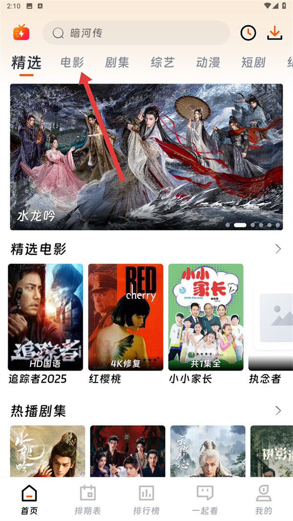 1、打开闪映影视,我们可以点击【电影】等分类标签,进入对应影视板块,挑选想看的影片哦。