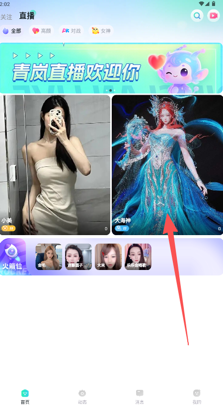 2、顶部导航设置全部、高颜、女神等精细化分类标签,实现直播内容的快速筛选与定位。