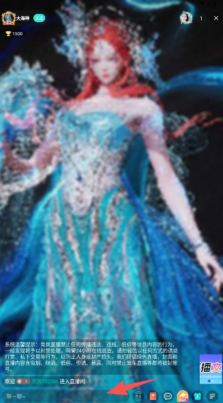 3、在直播间内,点击底部语音按钮即可开启连麦互动。