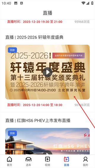 2、在直播板块页面,选择目标直播内容。