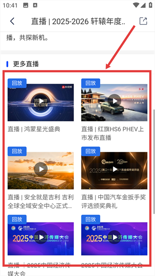 4、在【更多直播】板块,可查看如鸿蒙星光盛典等其他直播。