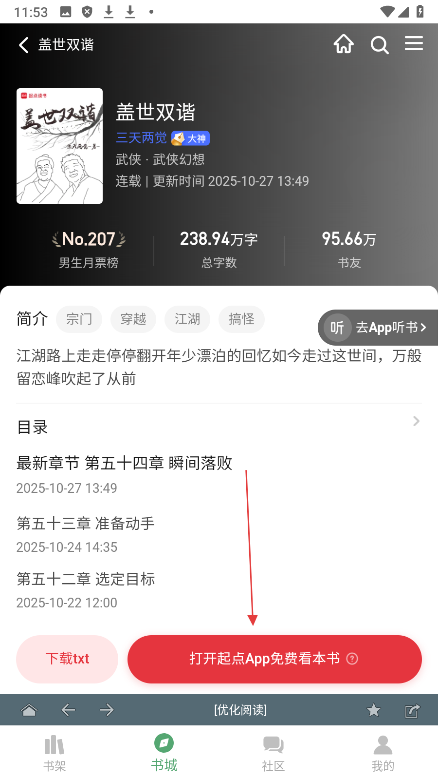 4、在书籍详情页面,点击【打开起点App免费看本书】,即可在起点软件中阅读该书籍。