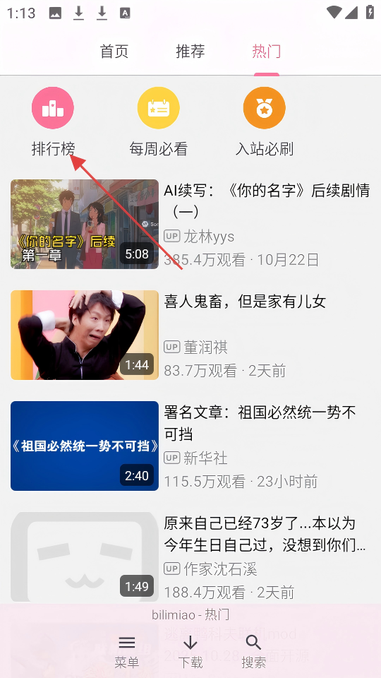 1、点击【排行榜】可进入查看各类热门视频排行。