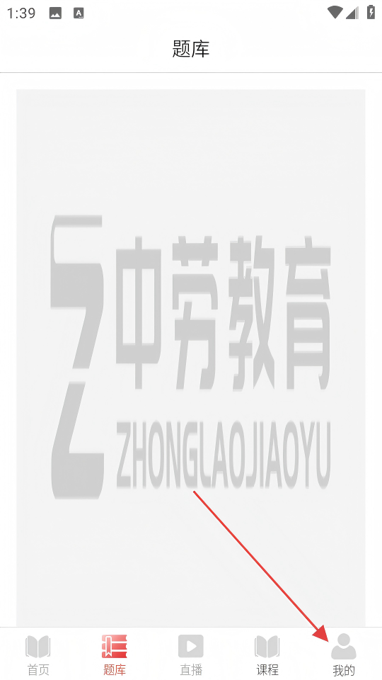 1、在【中劳教育】APP的题库页面,点击底部【我的】按钮,进入个人页面。