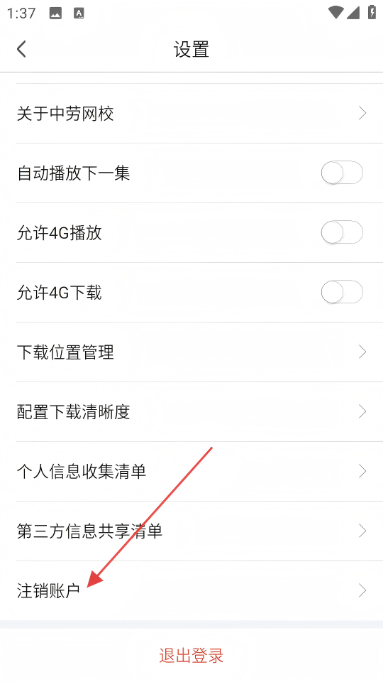 3、在【设置】页面,找到并点击【注销账户】选项,触发申请注销弹窗。