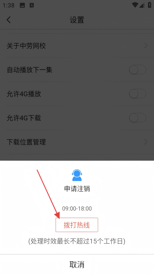 4、在【申请注销】弹窗中,拨打热线即可申请注销账户。