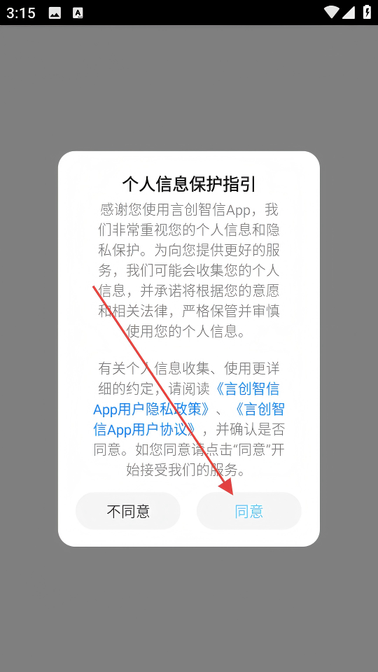 1、APP启动时弹出【个人信息保护指引】弹窗,点击【同意】,进入APP主界面。