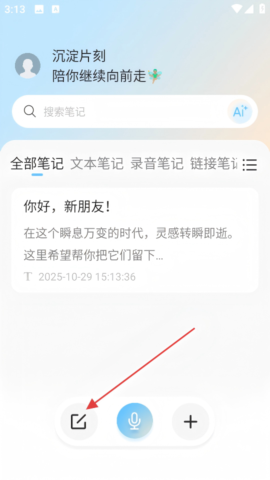 2、在APP首页,点击底部编辑图标,进入笔记编辑页面。