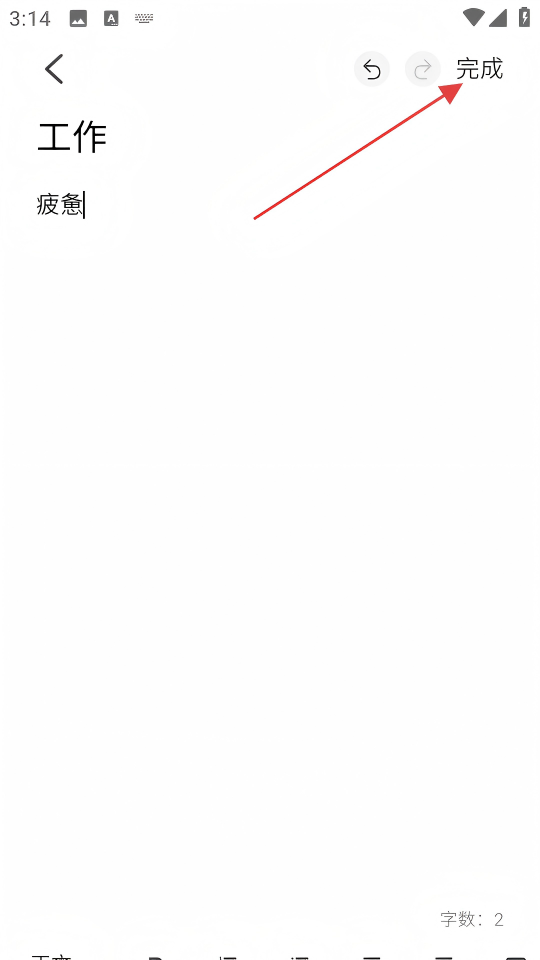 3、在笔记编辑页面,输入笔记内容后,点击右上角【完成】按钮,保存笔记。