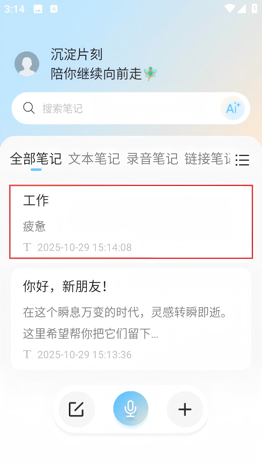 4、保存后返回首页,可在笔记列表中查看已创建的笔记。
