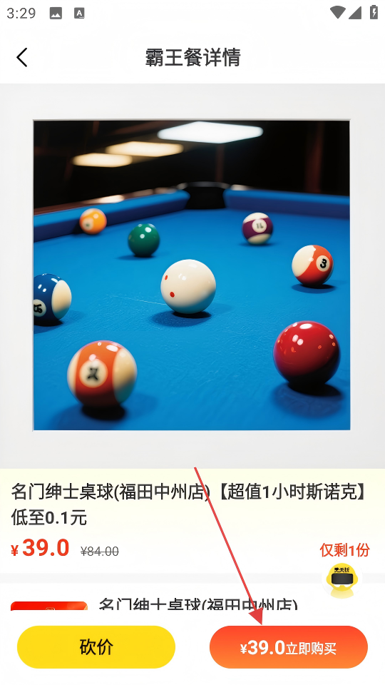 3、在霸王餐详情页,点击【立即购买】按钮,进入提交订单页面。
