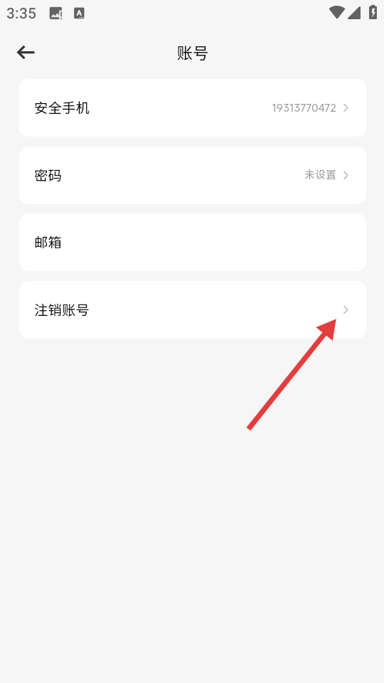 3、在账号管理界面点击【注销账号】,进入注销协议页面。