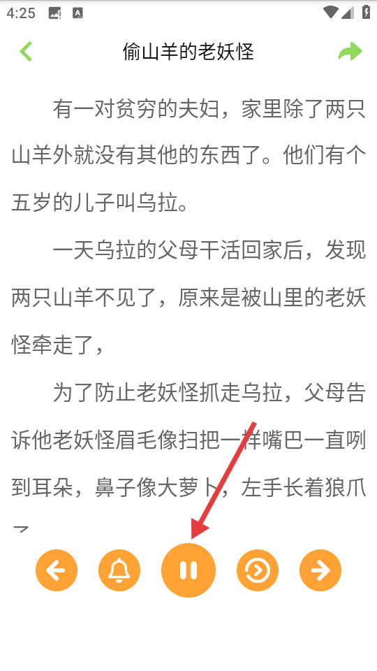 4、在故事阅读页,可查看故事内容,点击播放/暂停按钮可控制故事的音频播放。