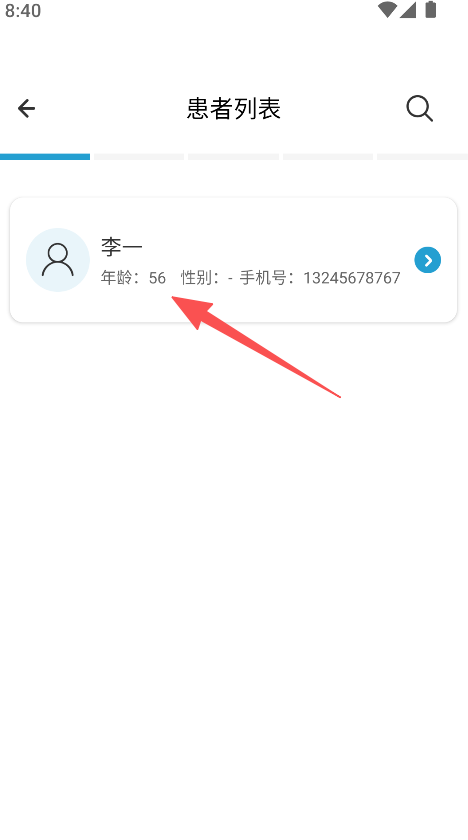 3、使用搜索功能,查找患者名字,快速定位目标患者。