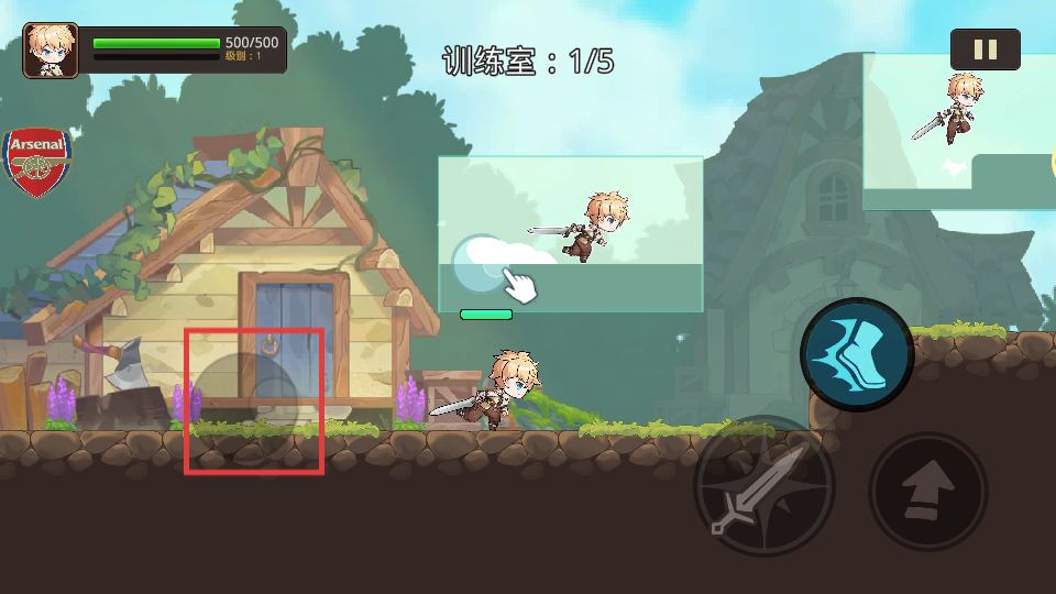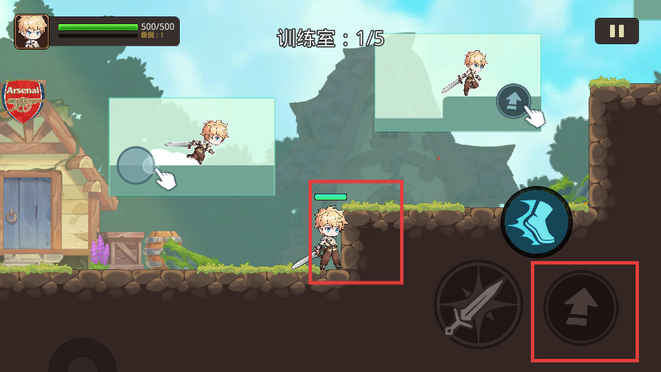 2、点击跳跃按钮,让角色跳跃到高处,继续训练室的探索。