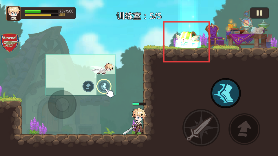 3、跳跃到达高处宝箱位置,获取奖励,完成训练室的挑战。