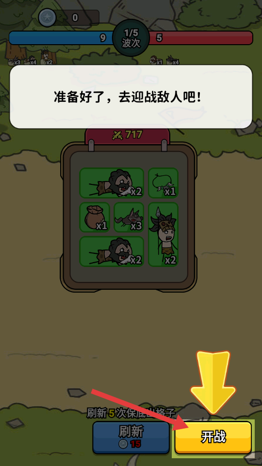 2、点击【开战】,开始战斗,与敌人展开对决。