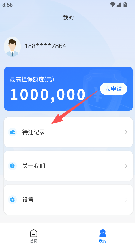 1、打开软件,进入我的,查看待还记录,掌握还款情况。