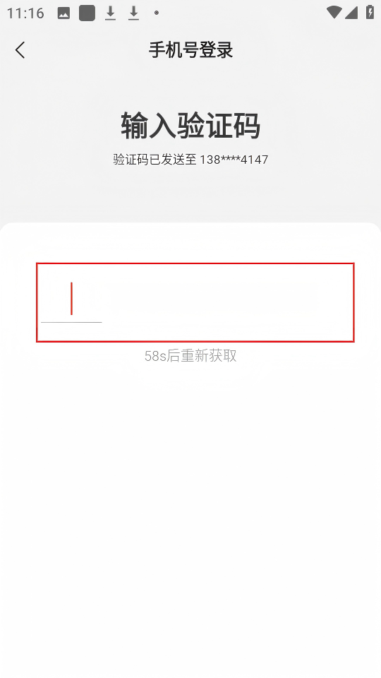 4、在【输入验证码】界面输入收到的验证码以完成登录。