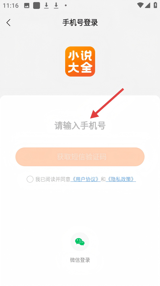 3、在【手机号登录】界面输入手机号,勾选同意《用户协议》和《隐私政策》后可获取验证码。