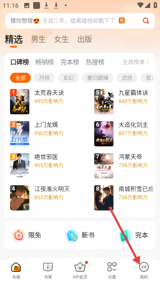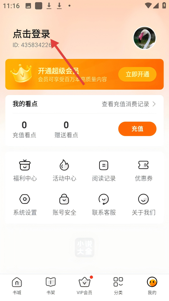 1、进入软件,在书城界面点击【我的】可进入个人中心。