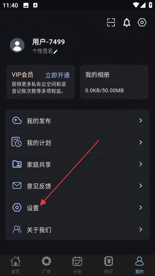 2、在个人中心页面,点击【设置】选项,进入设置页面。