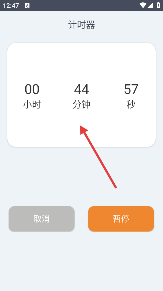 4、启动后,可在计时器页面查看剩余时间,还可进行取消或暂停操作。