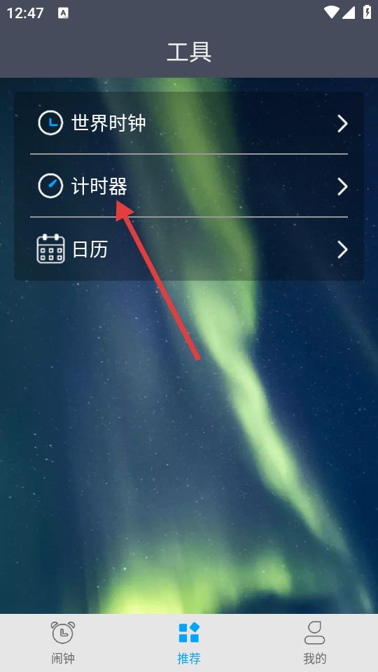 2、在工具页面,点击【计时器】选项,进入计时器设置页面。