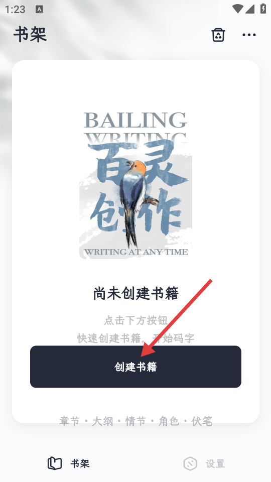 1、在书架页面,点击【创建书籍】按钮,创建新书籍。