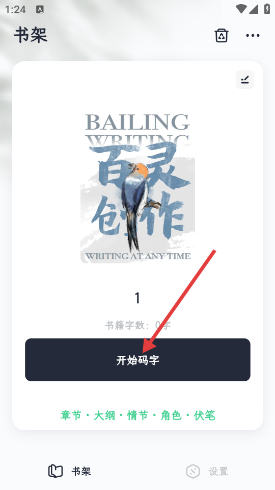 2、书籍创建后,点击【开始码字】按钮,进入码字页面。