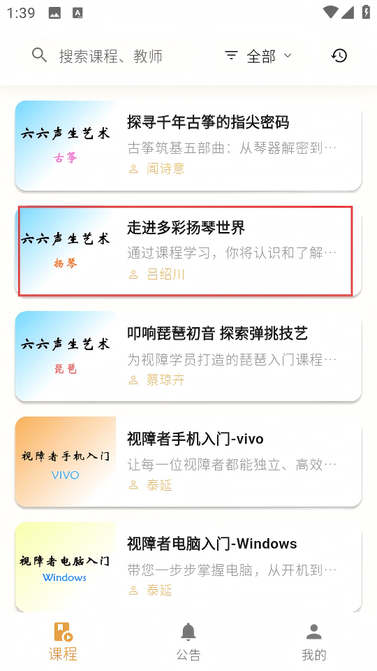 1、采用无障碍界面设计,全面适配读屏软件,确保视障用户操作顺畅,无需依赖视觉即可完成课程选择、学习等操作。