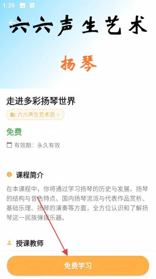 2、在课程页面,找到【走进多彩扬琴世界】课程,点击进入其详情页。