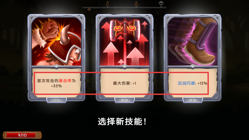 3、选择新技能,如提升暴击率、最大伤害等技能,增强角色战力。