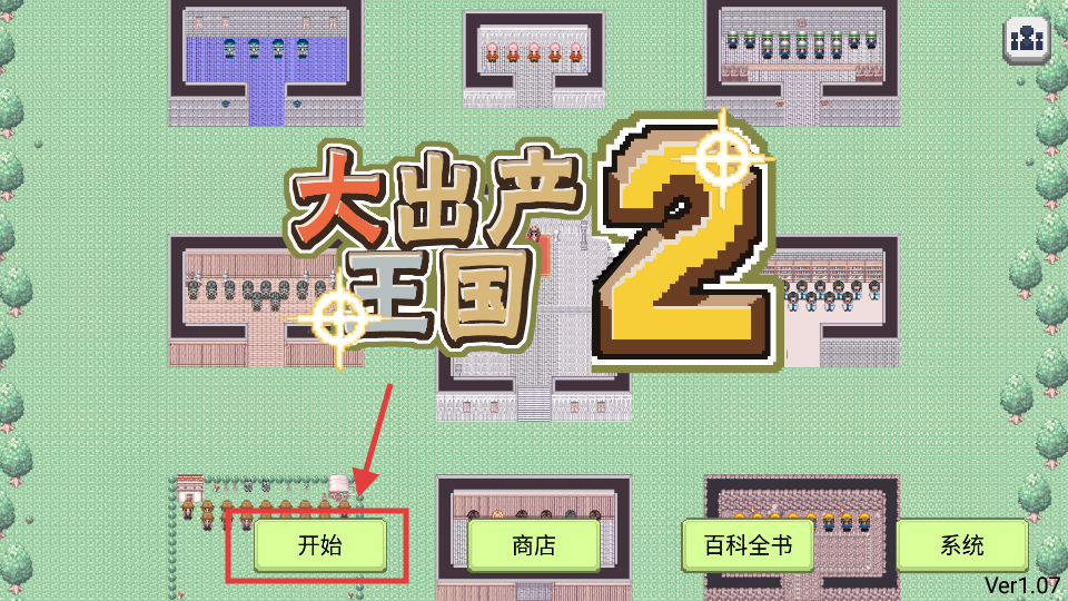 1、点击【开始】按钮,进入大出产王国2,开启国家经营与发展的挑战。