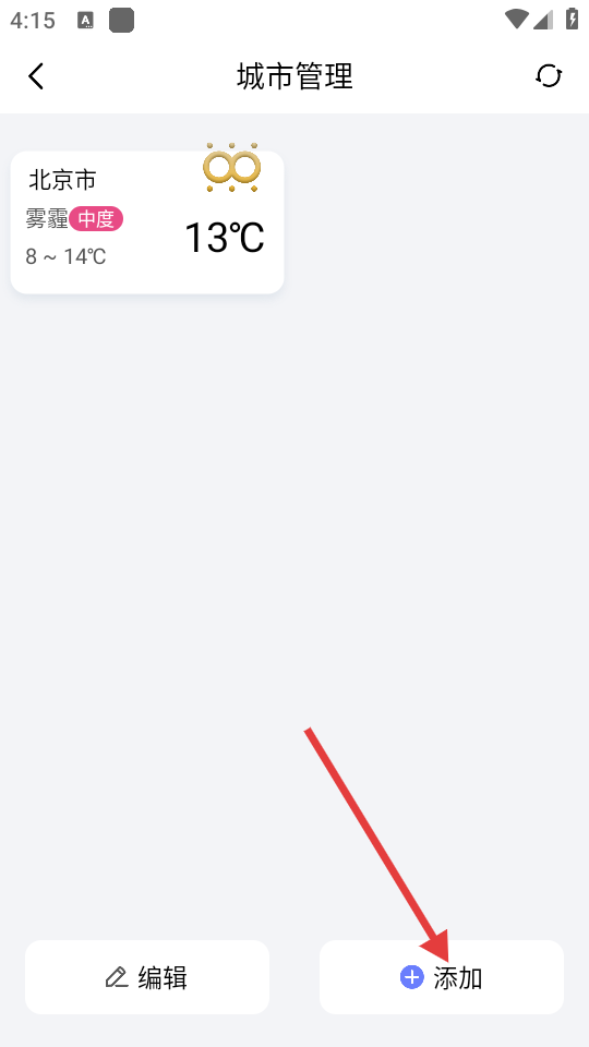 2、在城市管理页面,点击【添加】按钮,进入添加城市界面。