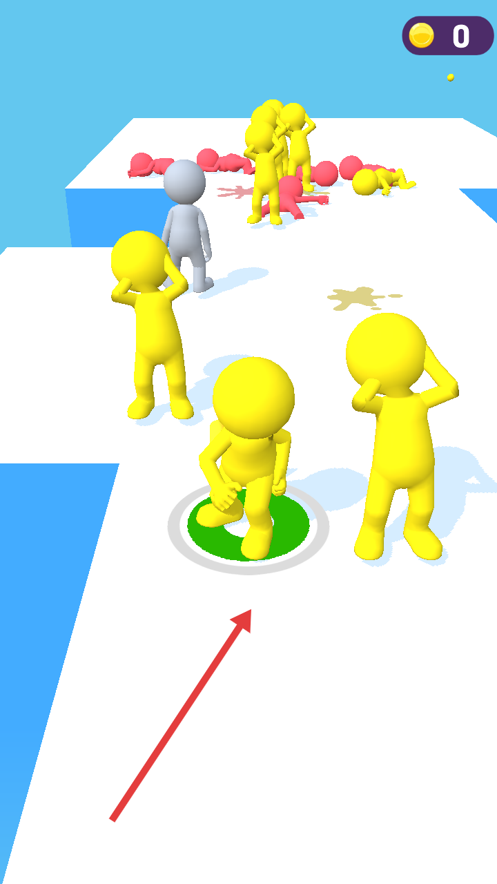 2、操控黄色小人移动,与红色敌人战斗,击败敌人以增加己方数量,推进关卡进度。