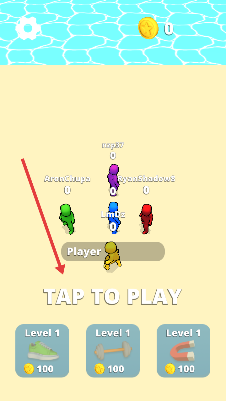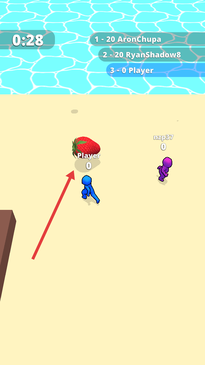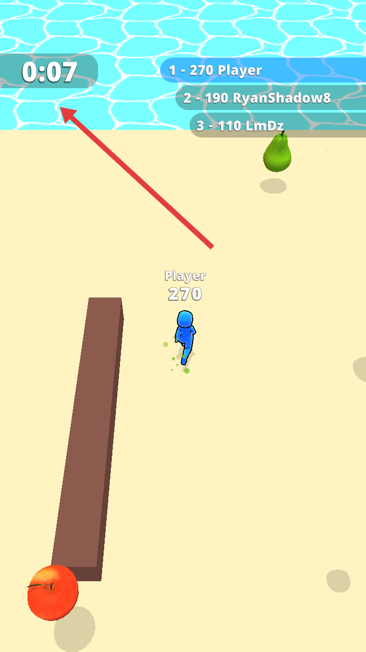 1、点击TAPTOPLAY开始,在沙滩场景中操控彩色小人,开启收集水果的挑战。